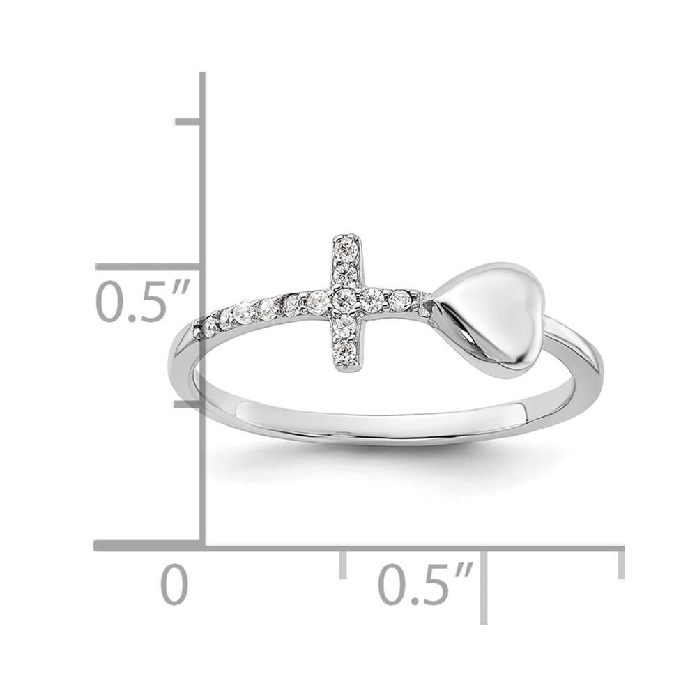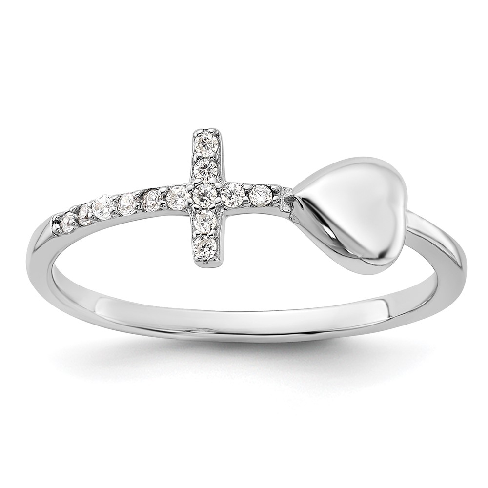 | Fine Jewelry | Sterling Silver Rhodium-plated Heart and CZ Cross Ring