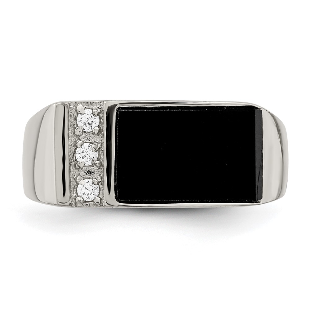 Sterling Silver Rhodium-plated Onyx & CZ Ring (QR2455-9)