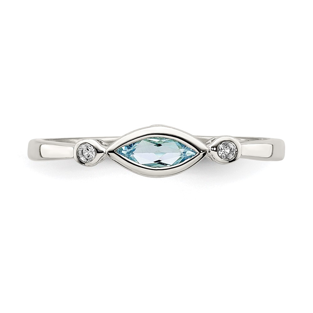 Sterling Silver Rhodium-plated Polished Aquamarine/White Topaz Ring (QR7065MAR-7)