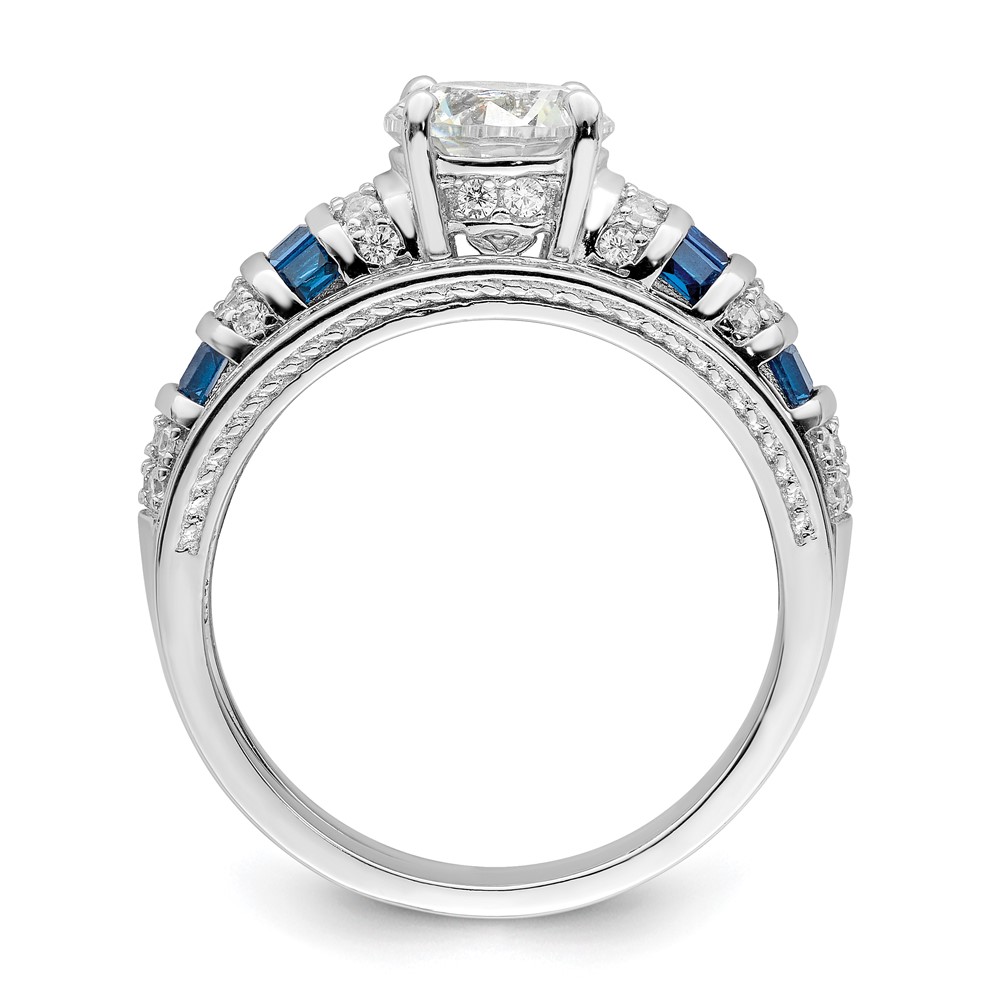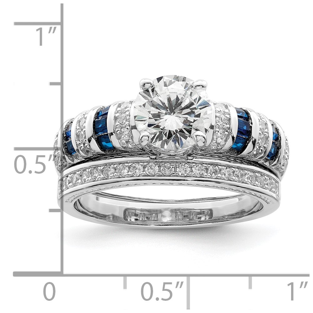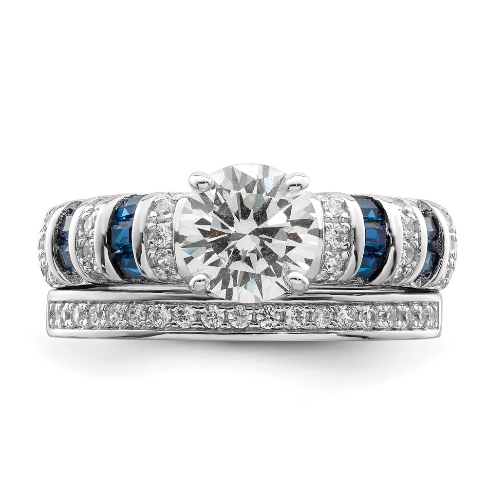 Sterling Silver Rhodium-plated Polished Blue & White CZ Engagement & Band R (QR7303-7)