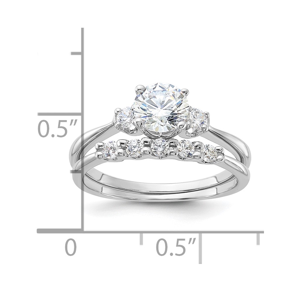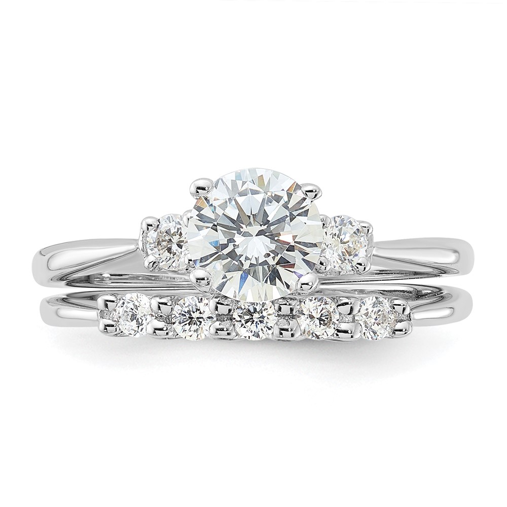 | Fine Jewelry | Sterling Silver Rhodium-plated Polished CZ Engagement Ring and Band Set