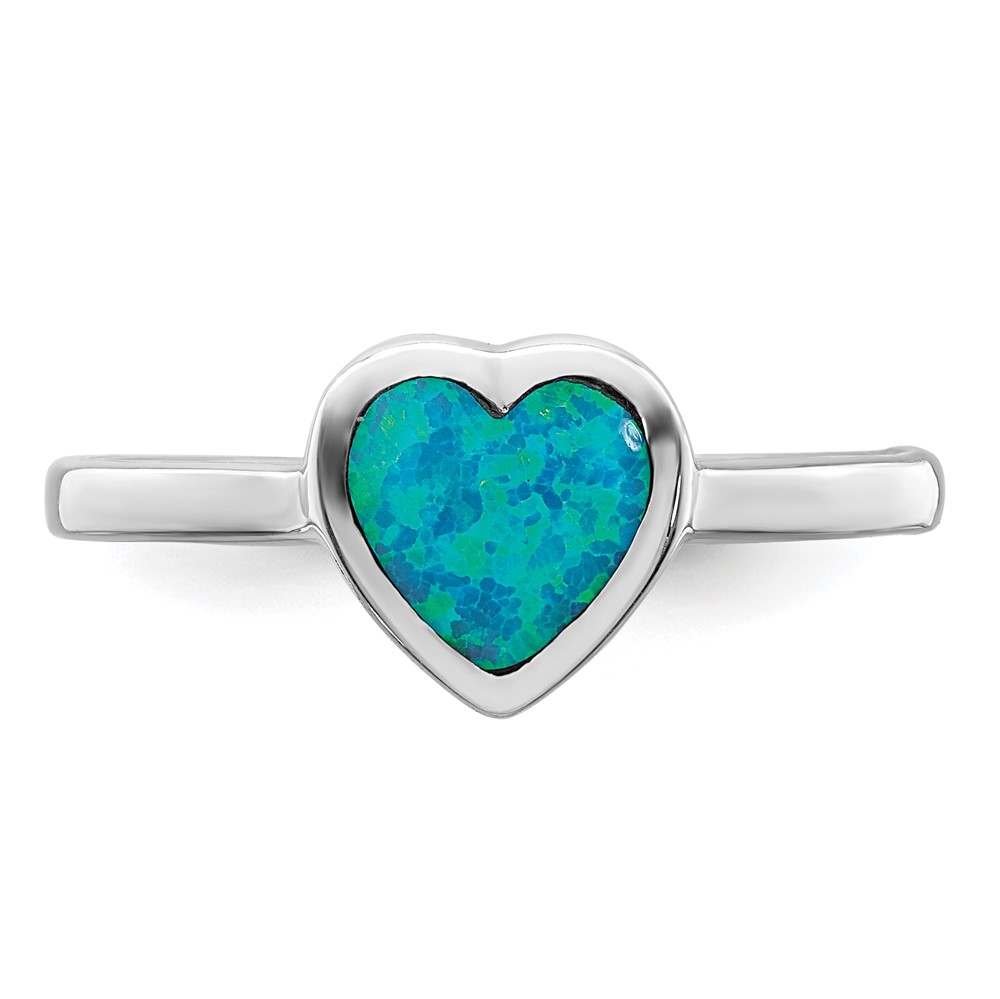 Sterling Silver Rhodium-plated Polished Heart Synthetic Opal Ring (QR6316-6)