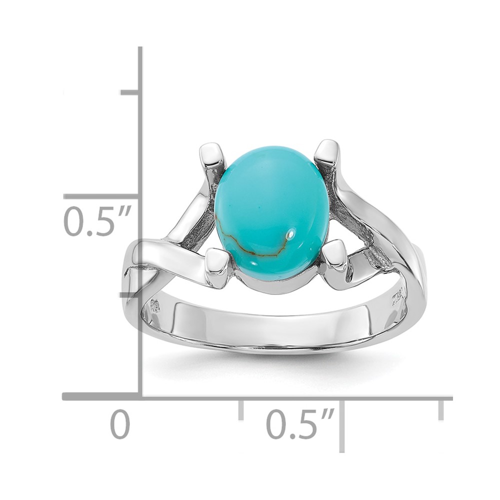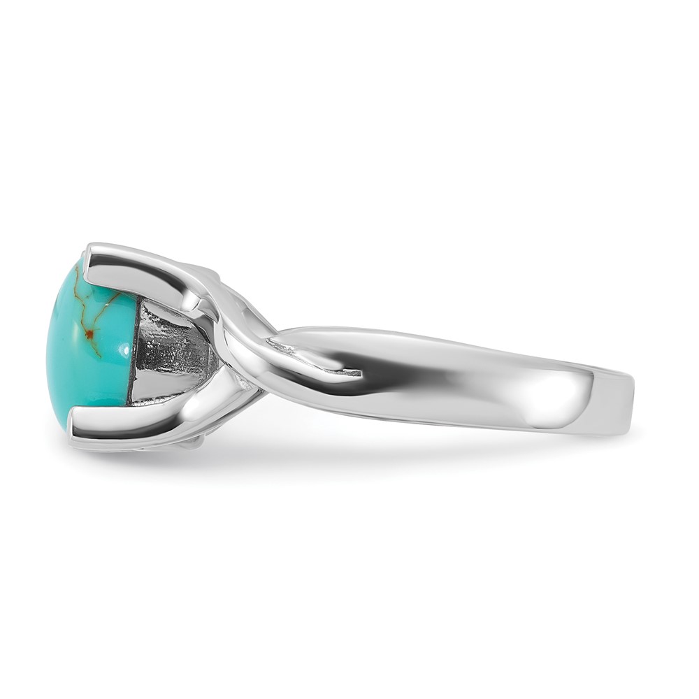 Sterling Silver Rhodium-Plated Polished Imitation Turquoise Ring (QR7591-6)