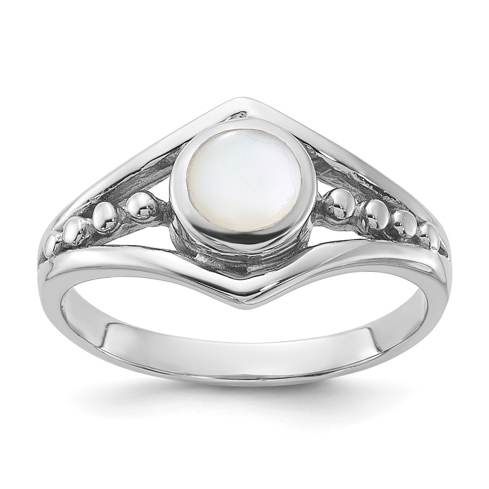 Sterling Silver Rhodium-Plated Polished Mother of Pearl Ring (QR7588-6)