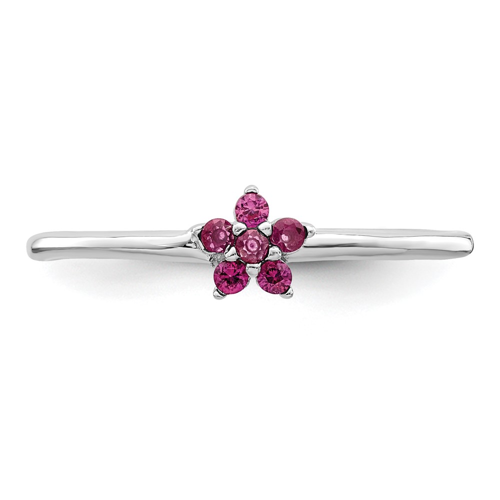 Sterling Silver Rhodium-plated Polished Red CZ Flower Ring (QR7354-6)