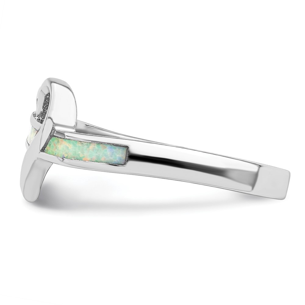 Sterling Silver Rhodium-plated White Created Opal Inlay Heart Ring (QR7334-7)