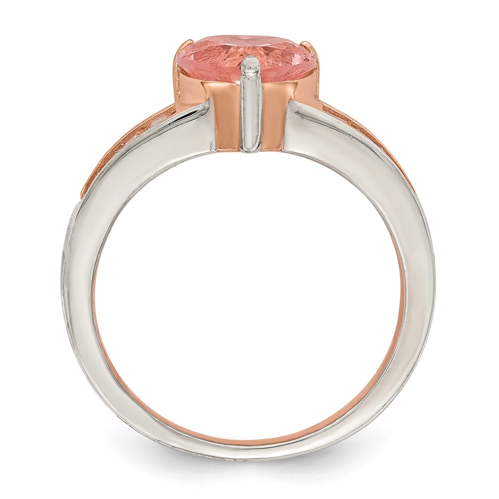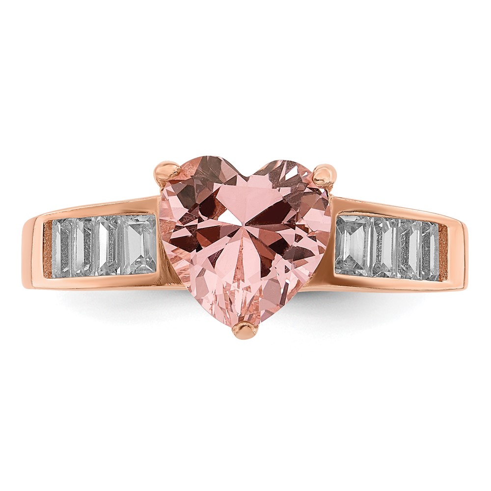 Sterling Silver Rose-plated Crystal Heart and White CZ Baguette Ring (QR7127-6)