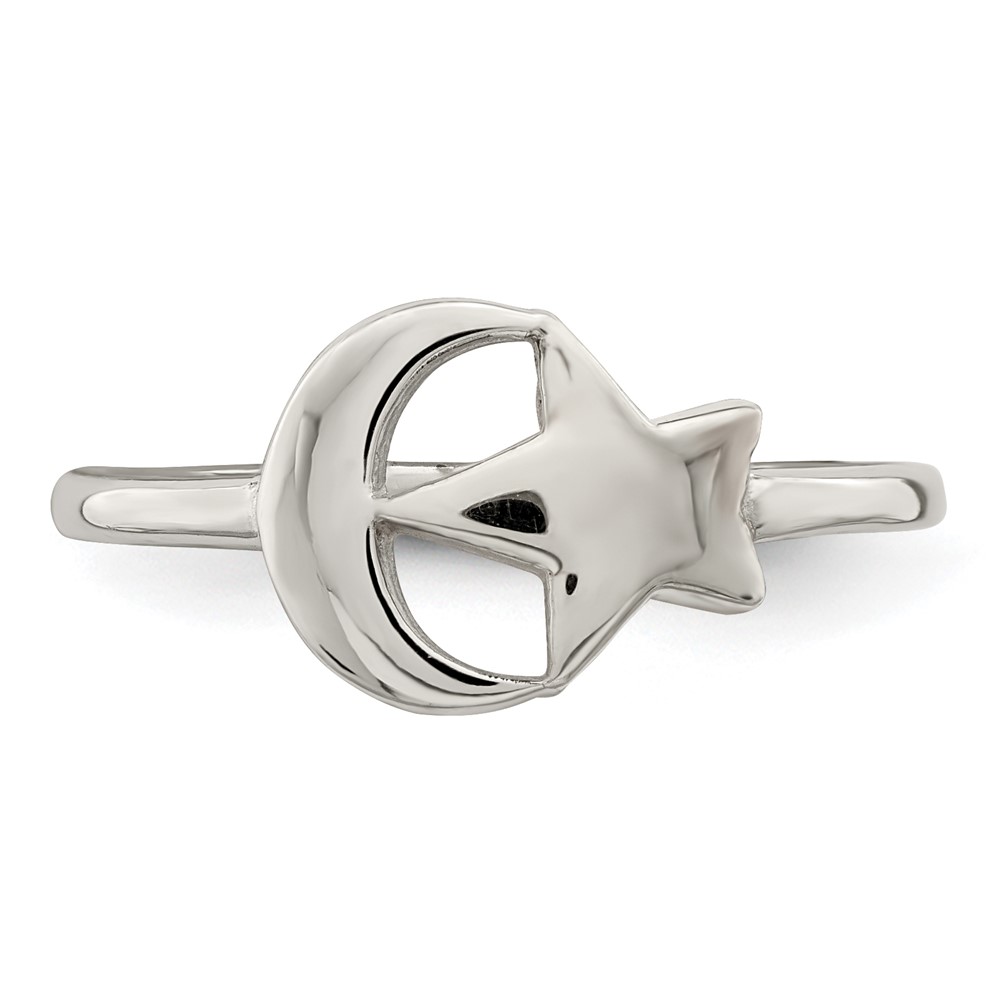 Sterling Silver Rose Tone Moon & Star Ring (QR6971-7)