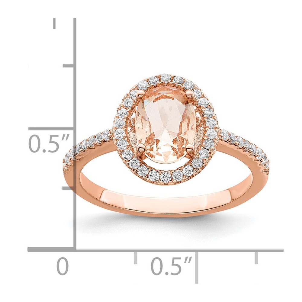 Sterling Silver Rose-tone Pink & White CZ Oval Ring (QR7390-7)