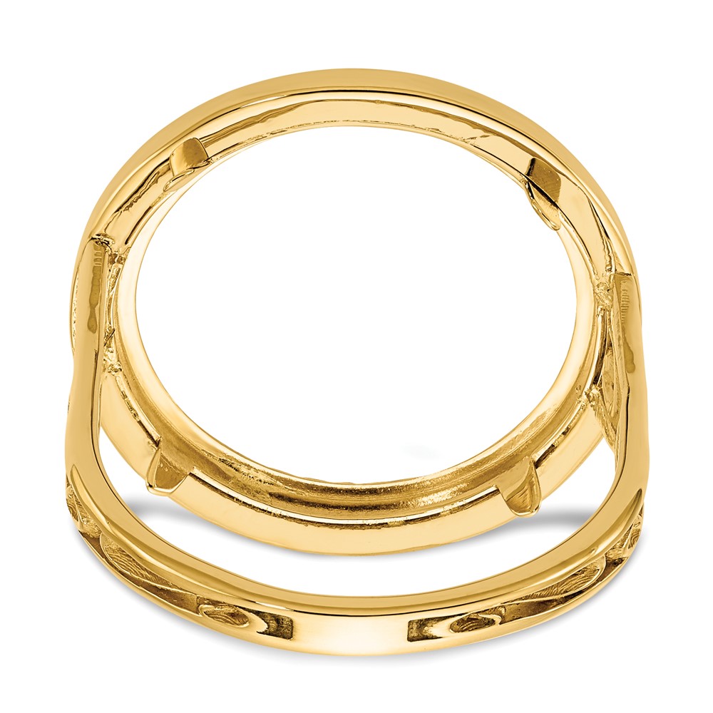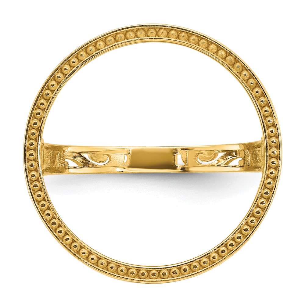 Wideband Distinguished Coin Jewelry 14k Ladies' Polished and Diamond-cut with Filigree Sides and Beaded Top 16.5mm Coin Bezel Ring (CR1D/10AE)