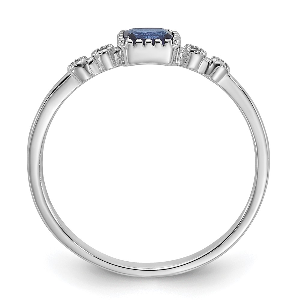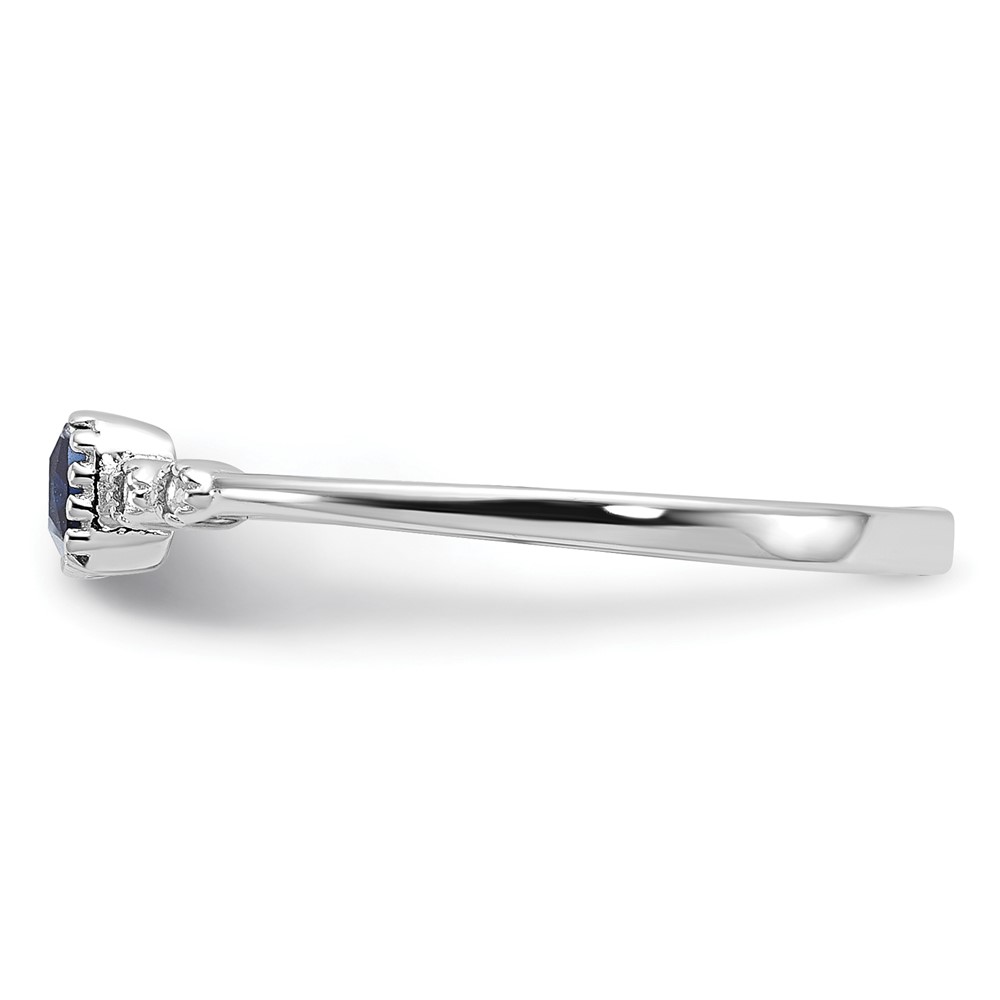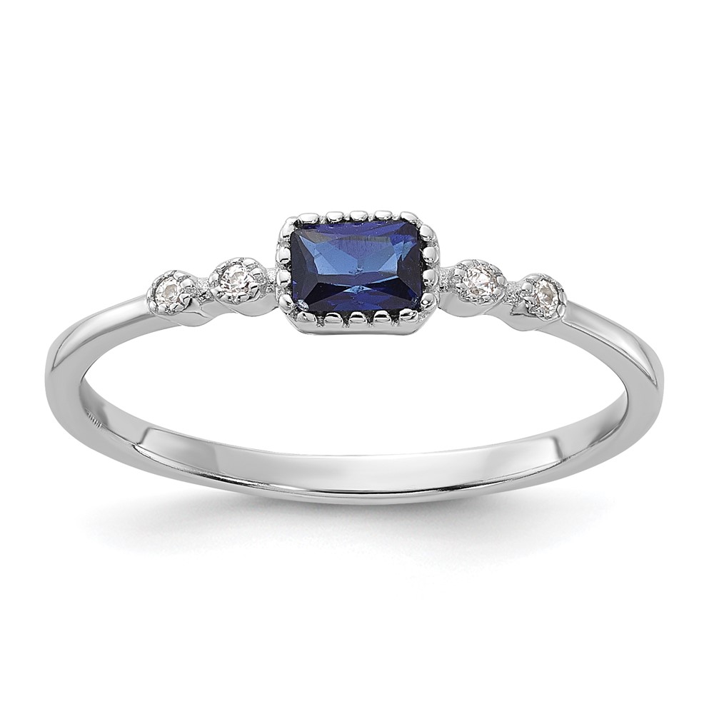 SS Rhodium-plated .02Cr. Blue Spinel and .02Cr. White Sapphire Ring (QR7452-6)